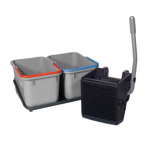 - ORYGINALNY kompletny wózek serwisowy z wyciskarką do mopów płaskich i sznurkowych oraz dwoma dużymi i dwoma mniejszymi wiadrami o pojemności 17 litrów i 10 litrów, dwoma dużymi półkami, a także uchwytem na worek na odpady 120 litrów - Numatic SM 1705 SRK1
