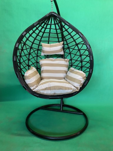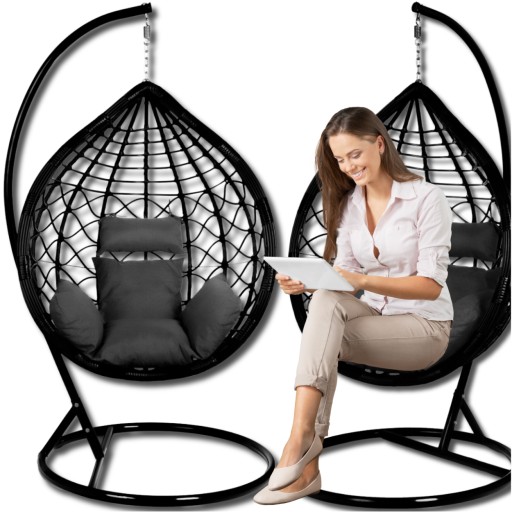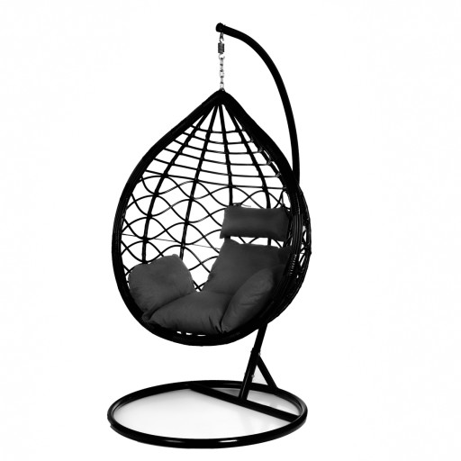 Fotel wiszący czarny ze stojakiem stelażem + poduszki