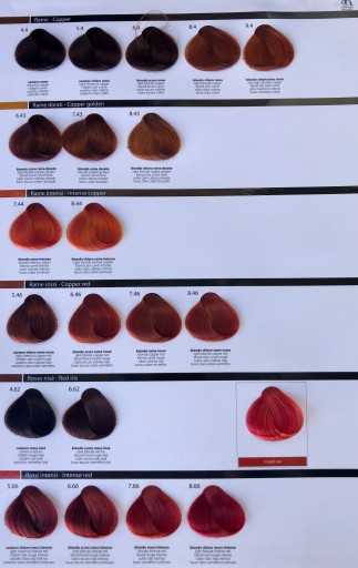 - paleta zawiera całą gamę odcieni dla zapewnienia bezpiecznej, jednolitej i niezawodnej koloryzacji.