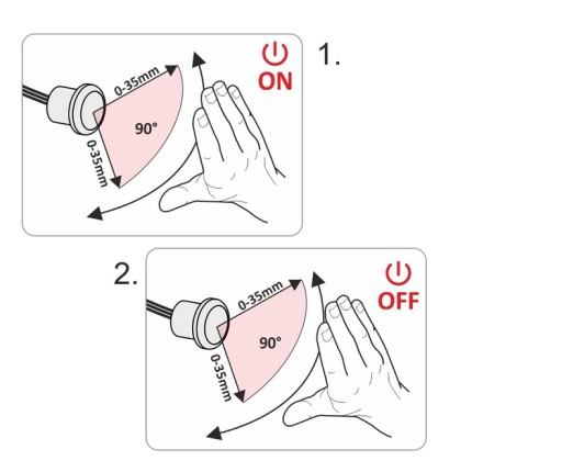 Ruch w okolicy sensora (do 35 mm, kąt 90 stopni) włącza oświetlenie. Ponowny ruch w okolicy sensora wyłącza oświetlenie.