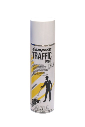 Farba Traffic Ampere to specjalna farba do trwałego znakowania podłoża z wysoką zawartością pigmentu (wzmocniony kolor), szybkoschnąca, odporna na działanie chemikaliów.