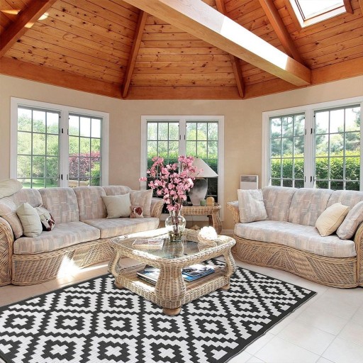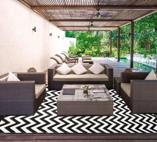 Dywan 120x180 cm wykonany z wodoodpornego polipropylenu idealne nadaje się na taras, balkon, camping.
