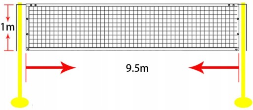 Praktyczna rozwijana siatka do siatkówki o wymiarach 9,5m x 1m wraz z torbą na zamek błyskawiczny. Siatka idealnie nadaje się na plażę, podwórko, halę sportową oraz boisko. Siatkę można również zawiesić między drzewami lub słupkami w ogrodzie!
