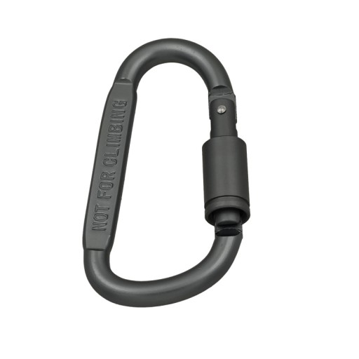 Bardzo praktyczny aluminiowy karabińczyk do zamocowania na pasku lub lince. Klamra wykorzystana może być również jako zawieszka lub element mocujący dla kluczy, sprzętu i narzędzi elektrycznych.