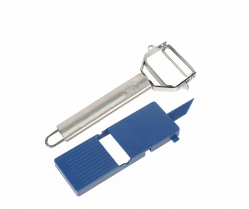 W zestawie znajduje się obieraczka oraz specjalna deseczka, dzięki której obierak zmienia się w szatkownicę poszatkujesz swoje warzywa.