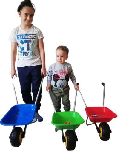 Duże taczki są bardzo pojemne, dzięki czemu pomieszczą mnóstwo asortymentu do przewożenia. Taczki sprawdzą się w zabawie w piaskownicy, ale mogą posłużyć też małemu ogrodnikowi podczas porządków w ogrodzie.