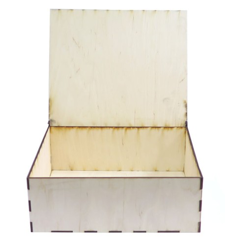 Pudełko ze sklejki o grubości 3mm z otwieraną przykrywką o zewnętrznych wymiarach: 25x20x9cm