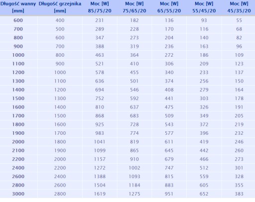 - głębokość wanny dostosowana do potrzeb grzewczych (od 10 do 70 cm) oraz możliwości technicznych montażu