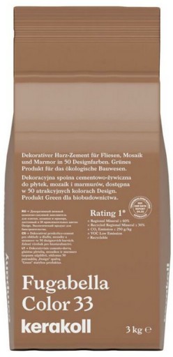 Fugabella® Color Dekoracyjna spoina cementowo‑żywiczna do płytek, mozaik i marmurów dostępna w 50 atrakcyjnych kolorach Design. Produkt green dla biobudownictwa. Fugabella® Color jest rewolucyjną, hybrydową spoiną dekoracyjną do wszelkich powierzchni z gresu, mozaik i kamieni naturalnych. Fugabella® Color charakteryzuje się hydrofobowością, niezwykle niską chłonnością wody, wysoką twardością powierzchni, podwyższoną odpornością na najczęściej spotykane substancje kwasowe i całkowitą jednorodnością koloru. Supergładkie wykończenie powierzchni Do spoin do 20 mm Kolekcja 50‑ciu kolorów autorstwa Piero Lissoniego Kolor opakowania jest wysoce orientacyjny. Niezbęde jest zapoznanie się z kartą techniczną. Zastosowanie Wysoce wytrzymałe spoinowanie fug od 0 do 20 mm, o gładkiej powierzchni, wysokiej twardości i hydrofobowych. Materiały do spoinowania: - gres porcelanowy, płyty pocienione, płytki ceramiczne, klinkier, terakota, mozaika szklana i ceramiczna, wszystkie rodzaje i formaty - kamienie naturalne, kompozyty, marmur. Przeznaczenie użytkowe: - podłogi i ściany, wewnątrz i na zewnątrz, w budownictwie mieszkaniowym, handlowym, przemysłowym i małej architekturze miejskiej, na powierzchniach silnie obciążonych ruchem, a także w strefach narażonych na skoki temperatury i zamarzanie - w basenach, nieckach i fontannach - podłogi ogrzewane. Nie stosować do spoin o szerokości powyżej 20 mm, na ścianach i podłogach wymagających specjalnej odporności chemicznej i całkowitej nie chłonności wody; do elastycznego wypełniania szczelin dylatacyjnych i podziałowych; na podłożach o wysokiej odkształcalności, niedostatecznie wyschniętych i narażonych na kapilarne podciąganie wilgoci