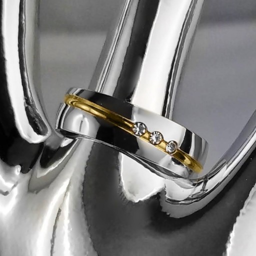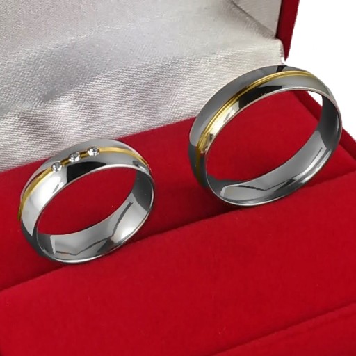 Luksusowe obrączki ślubne wykonane z najwyższej jakości stali szlachetnej, chirurgicznej 316L. Te obrączki to wyjątkowo szlachetne połączenie stali i złota oraz błyszczących znanych na całym świecie Austriackich szlifowanych cyrkonii, które zdobią obrączkę damską. Perfekcyjne wykonanie z wysoką dbałością o wszelkie detale oraz połysk gwarantują produkt najwyższej jakości. Doskonała kompozycja stworzona, by cieszyć, zachwycać i podkreślać miłość, jaką darzą się osoby decydujące się na wspólne życie. Idealne obrączki, które chciałoby się nosić na palcu przez cały czas i nie zdejmować ich nawet na chwilę.