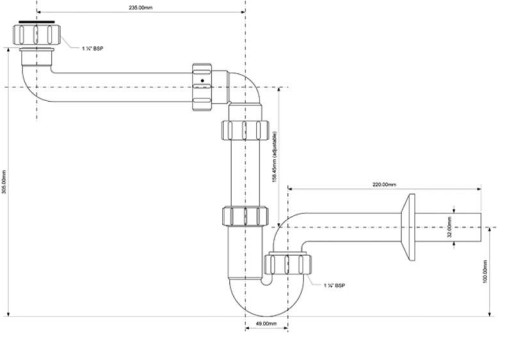 Jego najważniejszą cechą jest to, że posiada poziomą przedłużkę pozwalającą oszczędzać miejsce w szafce pod umywalką.