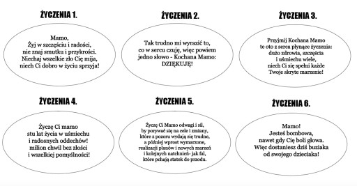 - odmienione imię mamy (jeśli wymaga tego wzór)