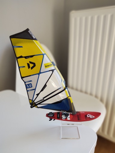 - Wszystkie elementy modelu (deska, bom, fin, footstrapy) powstają na drukarce 3D (poza masztem).
