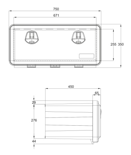 Skrzynka posiada wzmocnioną konstrukcje poprzez użebrowanie oraz przetłoczenia. Równie mocny zawias umieszczony na całej szerokości skrzynki.