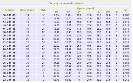 - koło pod pas zębaty o szerokości 15mm (HTD3M / RPP3)