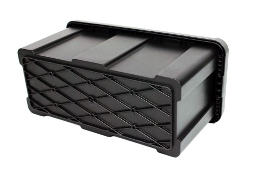 Skrzynka posiada wzmocnioną konstrukcje poprzez użebrowanie oraz przetłoczenia. Równie mocny zawias umieszczony na całej szerokości skrzynki.