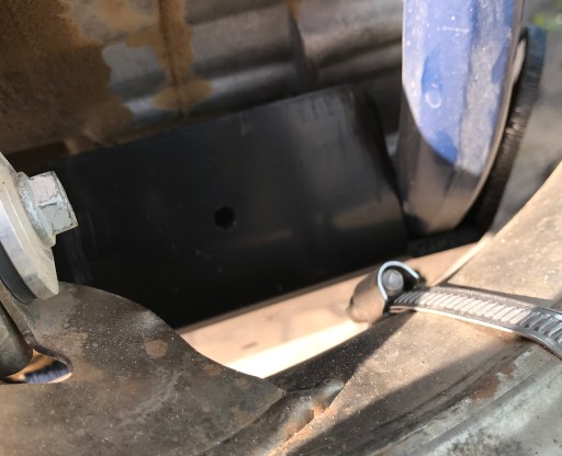 Otwór odpływowy błota, u góry wypust zabezpieczający przed przedostawaniem się błota i kamieni w przestrzeń między silnikiem a osłoną