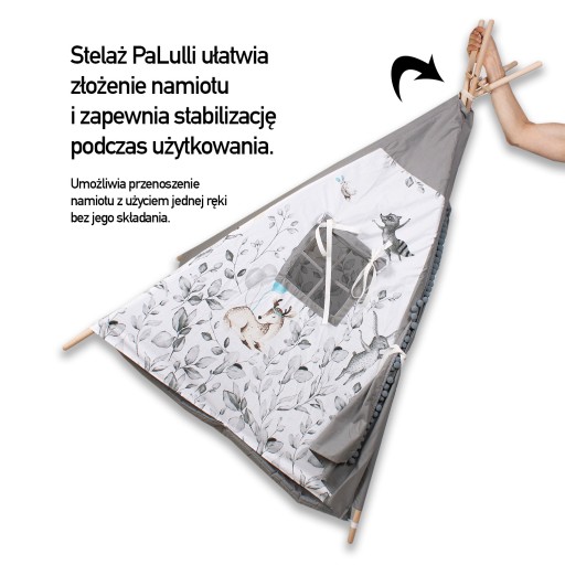 Stabilizator do namiotu TIPI to wyjątkowy prosty sposób na usztywnienie całej konstrukcji, co skutecznie zapobiega samoistnemu składaniu się TIPI podczas zabawy, zwiększając tym samym bezpieczeństwo twojego dziecka oraz komfort jego zabawy.