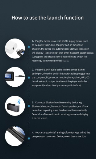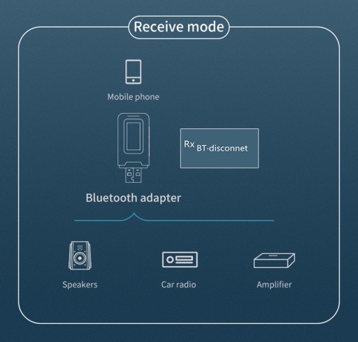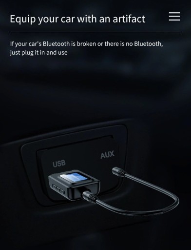 Służy do przekazywania muzyki nadawanej przez komunikację Bluetooth z urządzeń takich jak smartfon czy tablet, do odbiorników typu amplituner, zestaw głośnikowy lub odtwarzacz car audio za pomocą przewodu aux 3.5mm