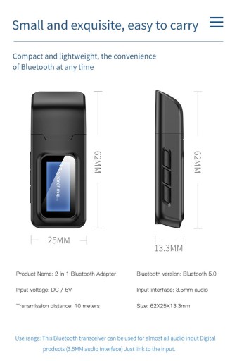 model: Bluetooth 5.0 AUX 3,5mm