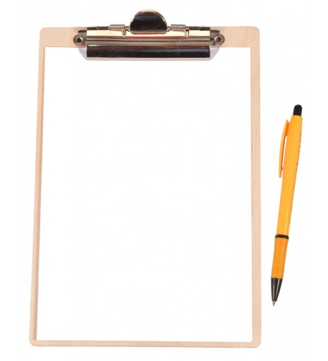 Ekologiczny drewniany clipboard na kartki A4. Pracując w biurze, ucząc się posiadamy wiele papierów, kartek, dokumentów, notatek. Podstawka pod kartki pozwoli na wygodne zapisywanie ważnych informacji. Drewniana podstawa jest twarda i solidna. Clipboard posiada metalowy klips. Pozwala to na bezpieczne spięcie większej ilość kartek. Kartki w ten sposób nie wypadają oraz są w jednym miejscu. Świetne rozwiązanie dla studentów, uczniów podczas zajęci szkolnych, wykładów.