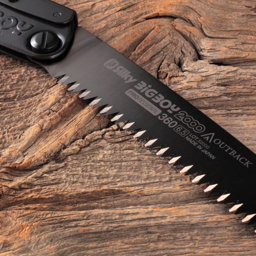 Silky BigBoy 2000 Outback Edition ma brzeszczot o długości 360 mm z szerokim ząbkowaniem (6,5 zęba na 30 mm długości brzeszczota), który idealnie sprawdzi się do cięcia świeżego i suchego drewna oraz kości. Ostrze o zakrzywionym profilu w odróżnieniu od pił prostych przyspiesza cięcie i zwiększa wydajność pracy nawet o 15-20%. Łukowaty kształt zapobiega także wypadaniu piły z rzazu oraz ułatwia ścinanie gałęzi znajdujących się ponad naszymi ramionami.