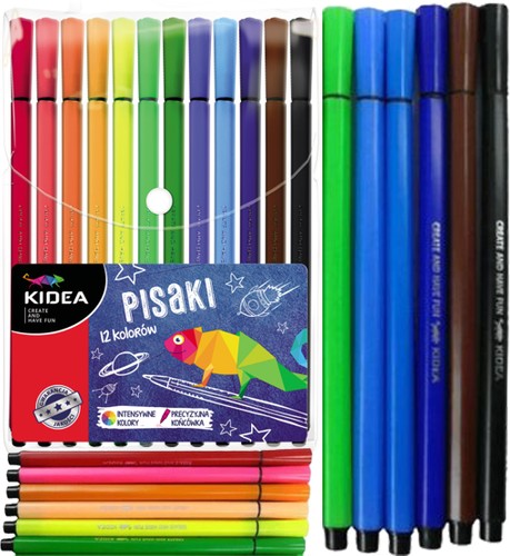 Pisaki Flamastry Szkolne 12 Kolorów Intensywne Kolory Cienka Końcówka Kidea