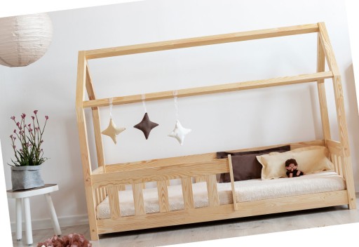 Zdrowy i bezpieczny sen to to, co każdy rodzić pragnie podarować swojemu dziecku. Ponieważ w łóżku spędzamy minimum 1/3 życia warto zadbać o to, aby nie tylko wyróżniało się ono wspaniałym designem, ale także wysokim komfortem. Drewniane łóżko dziecięce domek Rikko to idealna propozycja zarówno dla dziewczynki jak i chłopca. Delikatna, wyróżniająca się prostymi liniami forma doskonale wkomponuje się w różne style oraz dopasuje się bez problemu do całej gamy barw. Stawiając na naturalny design unikniesz szybkiego znudzenia się wyglądem łóżka i dopasujesz je w każdej chwili do wybranej tematyki wnętrza. Zamocowane wokół barierki sprawiają, że Rikko jest niezwykle bezpieczne dla najmłodszych, a stelaż tworzący daszek domku zapewnia doskonałe miejsce na zamocowanie wyjątkowych dekoracji, które sprawią, że wnętrze nabierze wyjątkowego charakteru. Nie szukaj dłużej idealnego łóżka dla Twojego malucha, Rikko to najlepsze co możesz mu podarować!