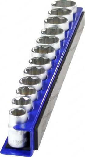 Przedmiotem oferty jest szyna magnetyczna na 12 nasadek 3/8" (bez nasadek).