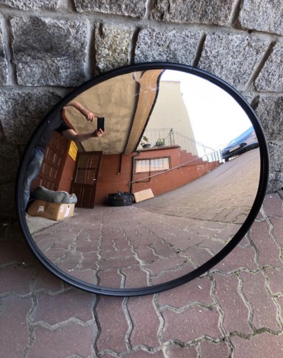 - Przedmiot dekoracyjny o lustrzanej powierzchni w wypukłym kształcie w czarnej oprawie