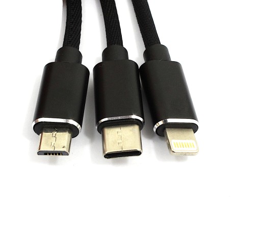 Oferujemy Państwu Kabel PC 3w1 kompatybilny z urządzeniami wyposażonymi w złącze USB typ c , micro USB oraz lightning.