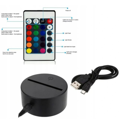 - zmiany podświetlenia kolorów ( 16 kolorów widoczne na pilocie)