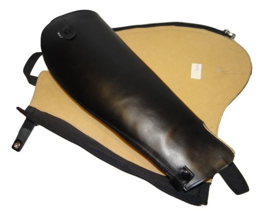Czarne ochraniacze ze skóry typu dwoina zapewnią komfort jazdy i przede wszystkim bezpieczeństwo. Z tyłu wstawka elastyczna (rozciągliwość do 1 cm) oraz zamek. Dostępne w naszej ofercie, w wielu różnych rozmiarach. Istnieje też możliwość uszycia ich na miarę.