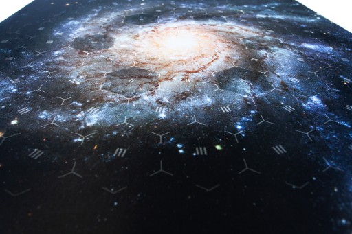 Gumowa mata antypoślizgowa do gry Eclipse o wymiarach 85 cm x 85 cm, z dedykowaną siatką heksagonalną o wielkości 8,8 cm.
