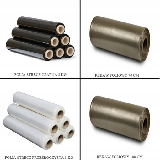 Jesteśmy bezpośrednim producentem foli strecz i rękawa foliowego 70 cm i 100 cm który znajdziesz na innych naszych aukcjach.