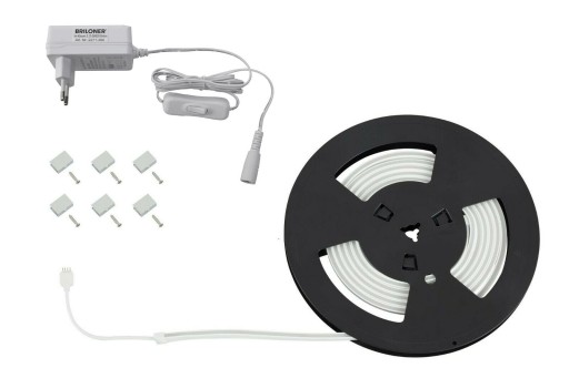 Nowoczesna taśma LED 3m do użytku wewnętrznego z zasilaczem i włącznikiem na kablu