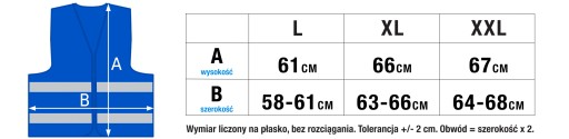 Dwa pasy odblaskowe o szerokość 5 cm po całym obwodzie zwiększają widoczność kamizelki po zmroku.