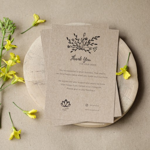 - Czarny nadruk z Twoim logo i wybranym adresem www lub Social Media. Proszę cię też o przesłanie treści podziękowania, jaką chcesz umieścić.