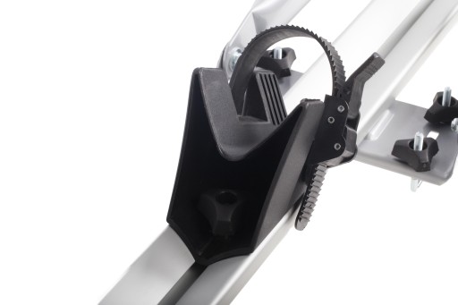 Amos Tour - pewny, lekki i przystępny cenowo uchwyt rowerowy z rynną aluminiową (140cm), szczęką z zamkiem i przesuwnymi podstawkami pod koła.