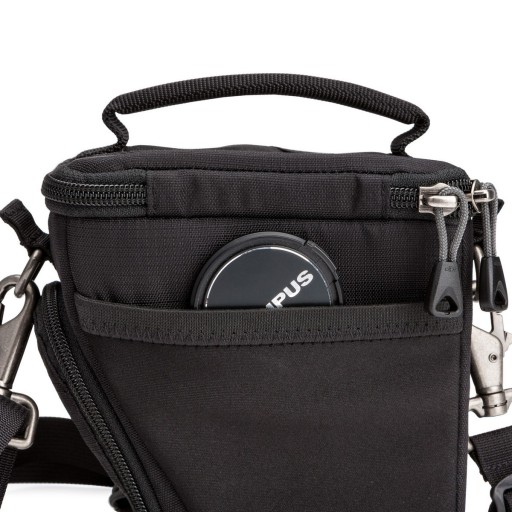 Digital Holster 5 to najmniejsza torba w całej rodzinie i jej zadaniem jest bezpieczne transportowanie małego bezlustrkowca z obiektywem lub aparatu kompaktowego typu super zoom. Wykonana z najwyższą starannością z najlepszych materiałów – nylonu 600D z powłoką hydrofobową, zamków YKK® RC, metalowych sprzączek i innych.