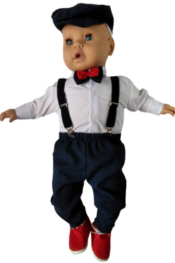 Elegancki, a zarazem z ciekawym elementem w postaci szelek do spodni, które nadają niesamowitego charakteru.