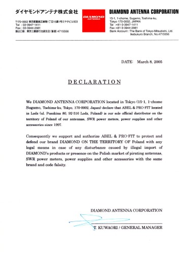 Kupuj tylko u autoryzowanego importera DIAMOND!