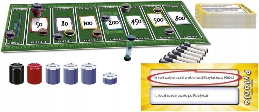 Ryzyk Fizyk Ryzyk Fizyk to najczęściej nagradzana gra imprezowa! Ryzyk Fizyk to jedna z najpopularniejszych gier quizowych na świecie. Zebrano w niej zabawne, ciekawe, niezwykłe pytania z różnych dziedzin. Jednak nie musisz być ekspertem w każdej z nich. Wygrasz, jeśli obstawisz właściwe odpowiedzi i zaryzykujesz w odpowiednim momencie. Ile ważył najcięższy w historii mistrz sumo? Ilu ludzi spacerowało po Księżycu? Ile koni wzięło udział w ekranizacji Krzyżaków? Ile jest okien w Pałacu Kultury i Nauki w Warszawie? Jaka jest największa prędkość ssaka? Znasz odpowiedzi na te pytanie? Jeśli tak wystarczy podać prawidłową liczbę. Jeśli nie można spróbować zgadnąć. A może zaryzykujesz i postawisz dolary na odpowiedź innego gracza? Atutem planszówki są bardzo proste zasady gry i gwarancja doskonałej rozrywki, niejednokrotnie podczas rozgrywek wzbudzane będą salwy śmiechu przy jednoczesnym treningu szarych komórek. Autorem planszówki jest Dominic Crapuchettes, ilustracje stworzył Jacoby OConnor. Światowy sukces Ryzyk Fizyk potwierdza ponad 1 milion sprzedanych egzemplarzy od 2005 roku oraz zdobycie ponad 20 nagród i nominacji na całym świecie.