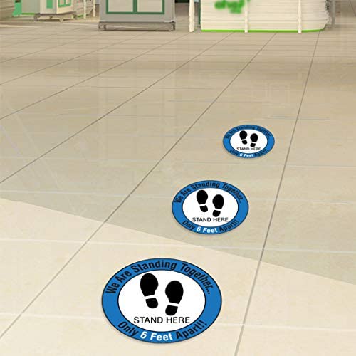 Znaki podłogowe zapewniające dystans społeczny - okrągłe około 30 x 30 cm - niebieskie