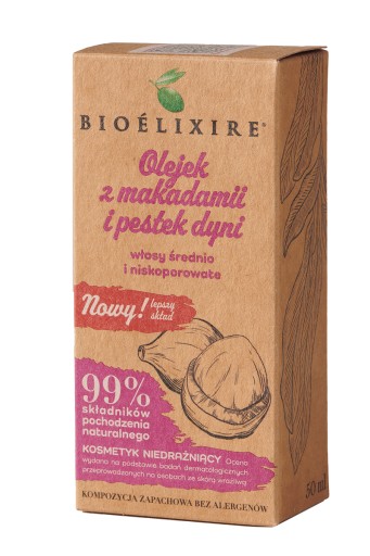 Wegański olejek z makadamii i pestek dyni marki Bioelixire