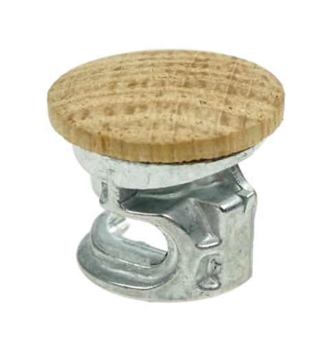 Zaślepka do złącza mimośrodowego (mimośrodu) fi 15 mm, z kapeluszem 17 mm posiada bolec o grubości 4,5 mm wciskany w gniazdo mimośrodu, przeznaczona jest to maskowania mimośrodu widocznego po zamontowaniu w meblu. Zaślepka wykonana jest z drewna dębowego, jest surowa gotowa do wybarwienia na dowolny kolor. Istnieje możliwość wykonania innych rozmiarów, jednak wymagamy tutaj większej ilości jednorazowej do produkcji.