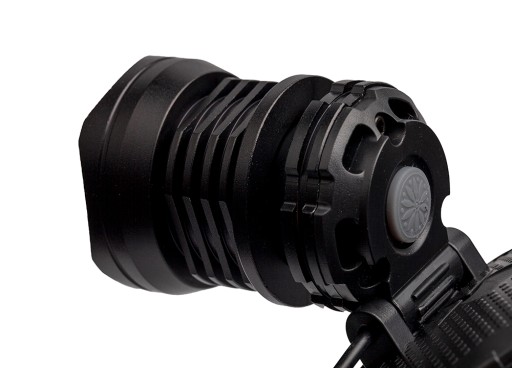 Dodatkowo w tylnej części latarka posiada czerwoną lampkę ostrzegawczą pracującą w wariancie ciągłym bądź pulsacyjnym.
