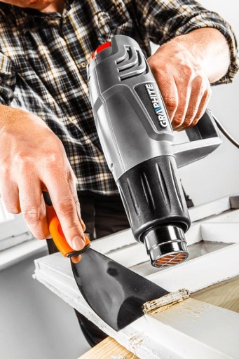 Wysokiej klasy opalarka elektryczna GRAPHITE (nr ref. 59G524) o dużej mocy 2000 W, przeznaczona do usuwania powłok lakierniczych, wyginania i zgrzewania termoplastów, odmrażania, suszenia oraz okleinowania elementów meblowych. Elektronarzędzie wyposażone jest w czteropozycyjny przełącznik, przy pomocy którego można wybrać jeden z 3 poziomów temperatury i przepływu wydmuchiwanego powietrza. Ponadto na drugim i trzecim biegu istnieje możliwość płynnej regulacji temperatury. Zakres temperatur: I: 25oC, II: 80-600oC, III: 80-600oC. Opalarka jest lekka i wygodna, posiada rękojeść pokrytą antypoślizgowym materiałem - dzięki temu dobrze leży w dłoni. Konstrukcja urządzenia daje możliwość ustawienia opalarki w pozycji pionowej. Opalarka posiada zabezpieczenie termiczne wielokrotnego użytku, uniemożliwiające przypadkowe przegrzanie. Urządzenie wyposażono w elastyczny i wytrzymały przewód zasilający w powłoce gumowej o długości 3m, dedykowany także do zastosowań profesjonalnych i przemysłowych zarówno wewnątrz jak i na zewnątrz pomieszczeń. Do zestawu z opalarką dołączone zostały dodatkowe dysze i skrobak z rączką. Zgodność z europejskimi standardami zapewnia certyfikat CE.