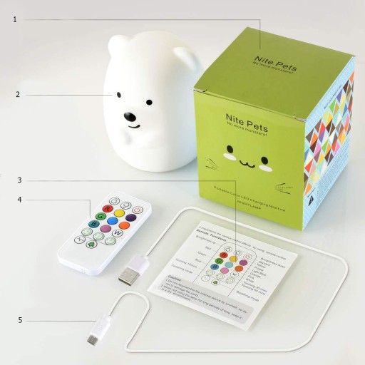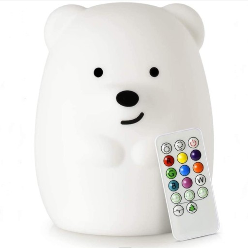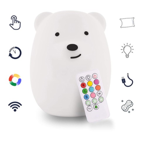 - DODATKOWE ZALETY: możliwość sterowania oświetleniem za pomocą "klepnięcia" w misia, tryb ECO, funkcja Timer, brak ostrych elementów, silikon można zdjąć i umyć, produkt jest bezpieczny dla dzieci.