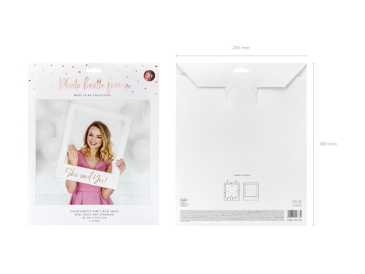 Ramka selfie w kolorze białym z napisem She said yes w kolorze różowego złota do samodzielnego złożenia,